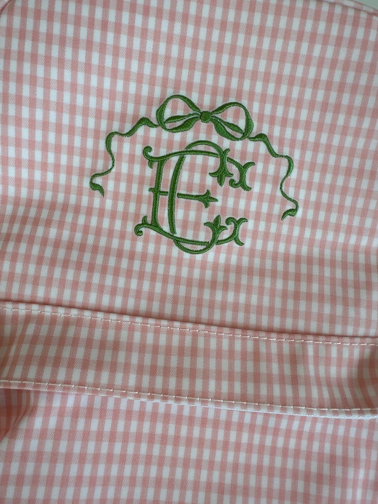Recommendation - Name in Sophie or Kelly or Initials in Vienna in matching pink or white thread